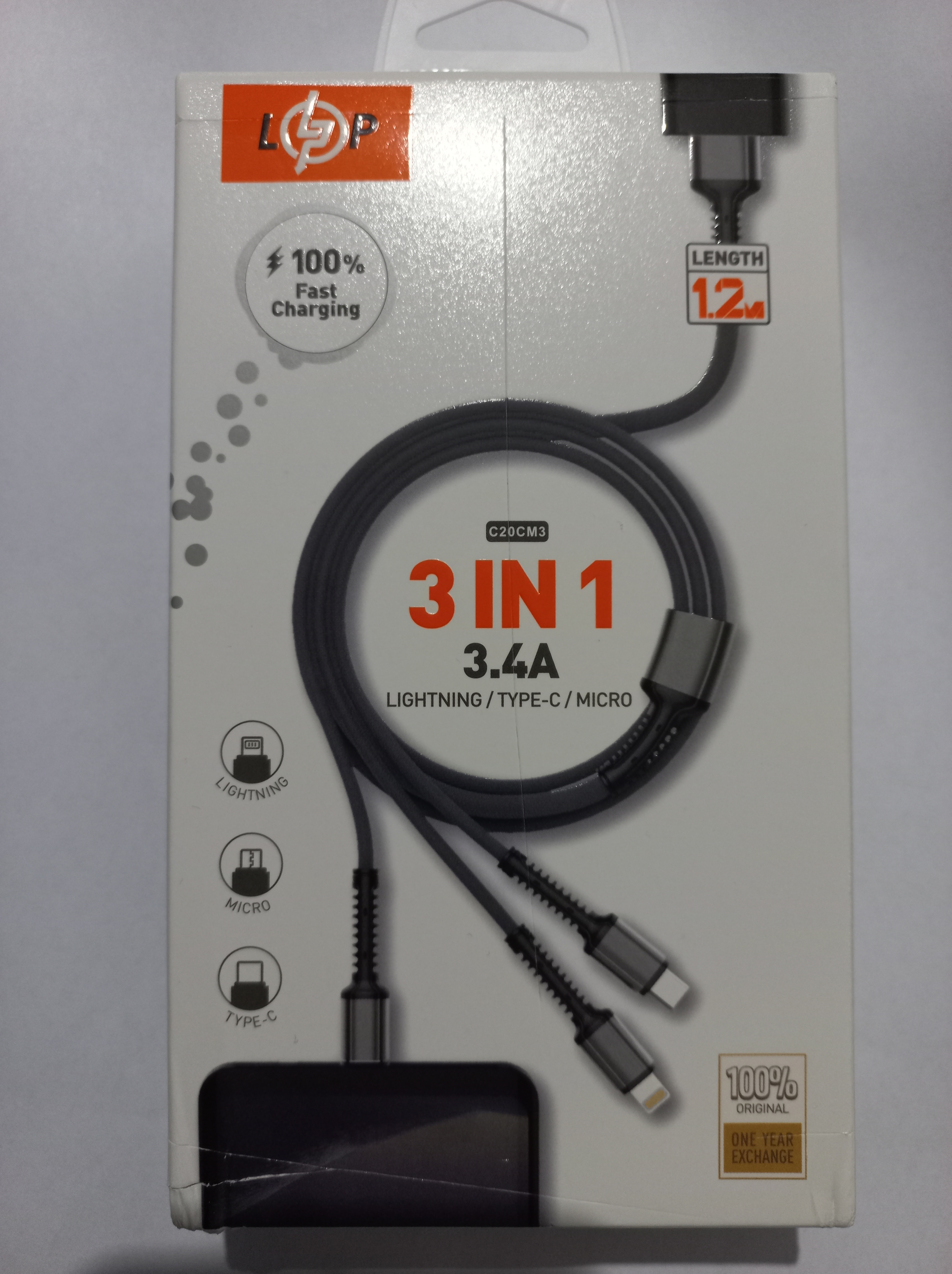 Другие товары похожие на Кабель (шнур) LP 3 в 1 USB 3.0 to Type-C/Lightning/Micro-USB 1м (C20CM):