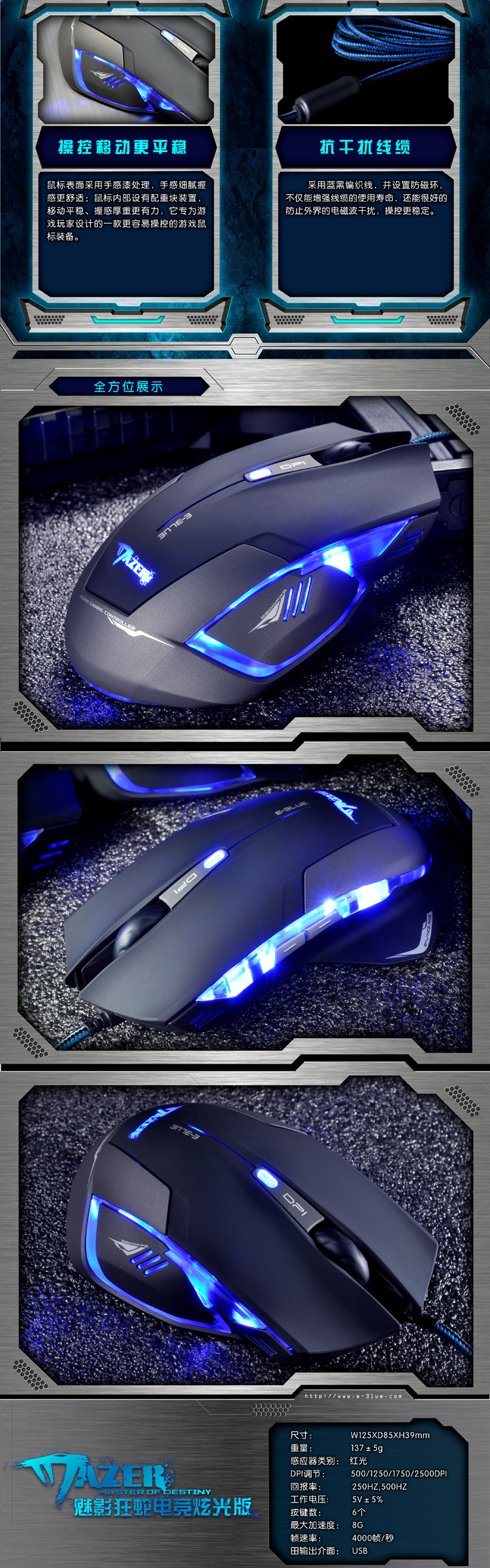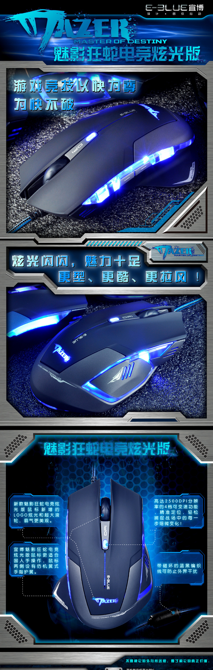 E-Blue Mazer Pro Dazzle Gaming Mouse— игровая мышь с поддержкой технологии работы на любых поверхностях. Эта высокоточная мышь 2500 dpi позволит вам насладиться игрой, где бы вы ни были.